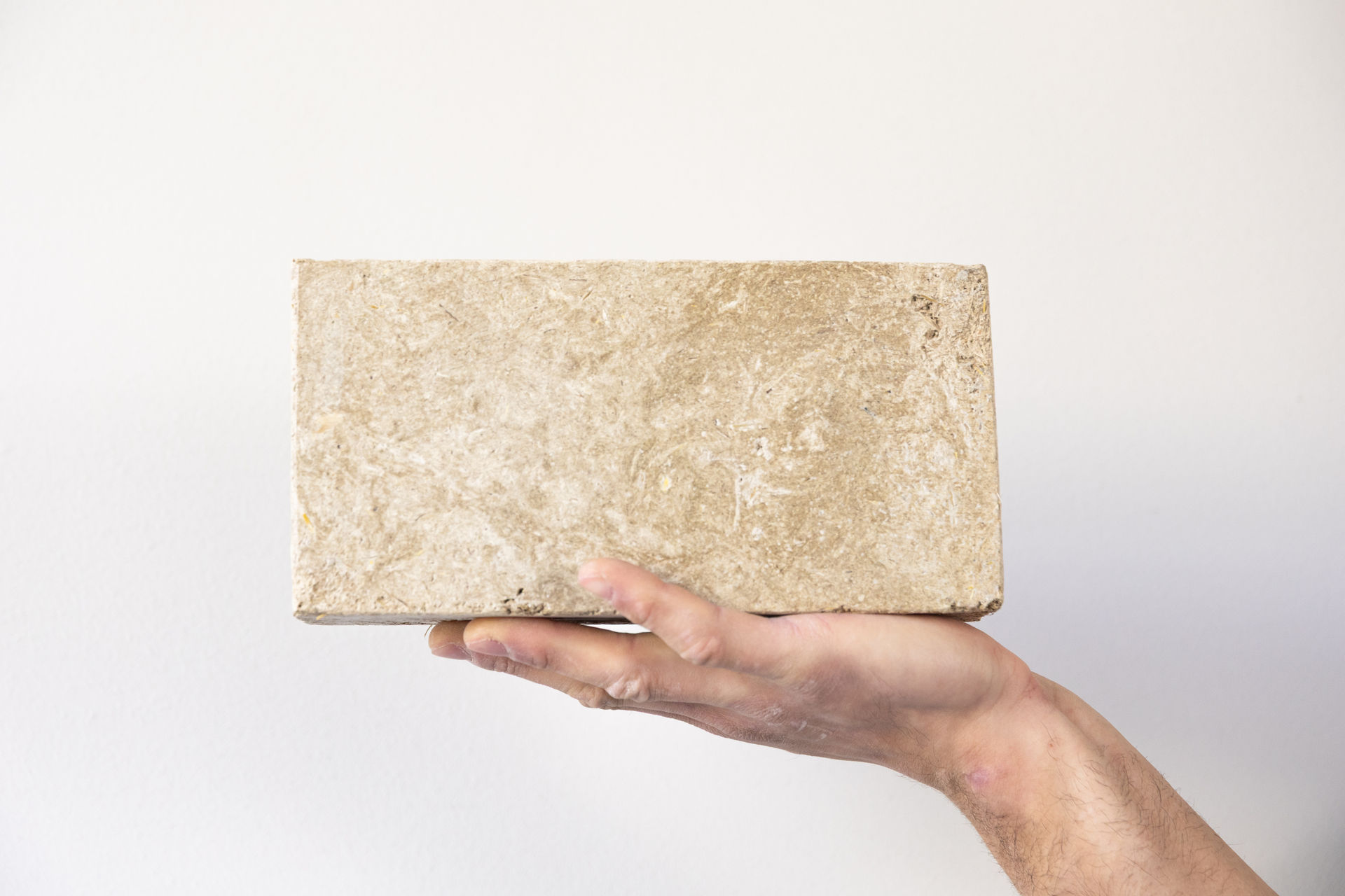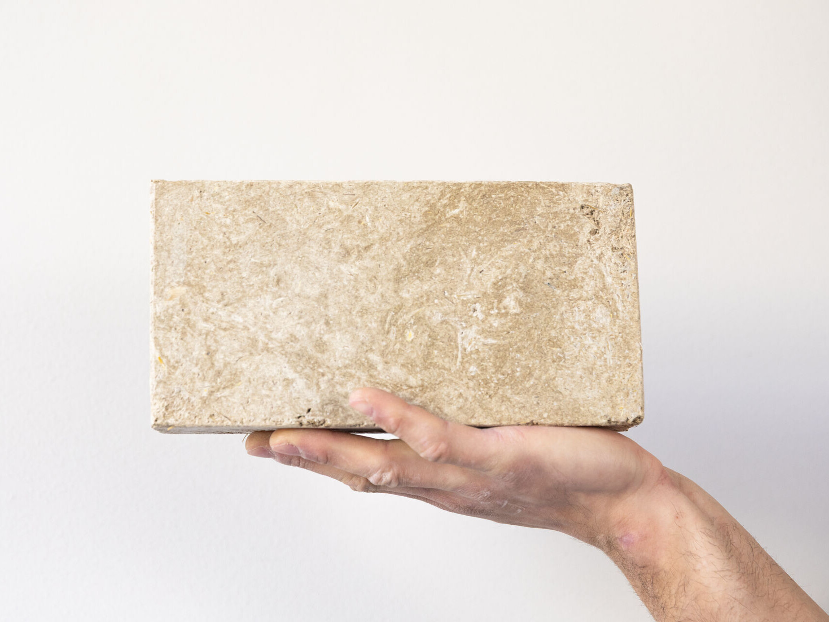 Sägereststoffe + recyclingfähiges mineralisches Bindemittel.